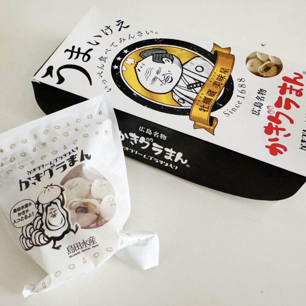 今回の取材の目的は「かきグラまん」です。まず、パッケージが目を引きます(笑)広島牡蠣は加熱しても縮みにくく、小ぶりで肉厚なのが特徴。その旨みを生かし、牛乳と小麦粉から丁寧に作ったホワイトソースとともに包んだ逸品です。約10年前に山陽女学院とのコラボから誕生し改良を重ね、手作りにこだわって現在の商品となったとのこと。一口頬張るとゴロっと牡蠣が入っていて旨味が濃厚!ホワイトソースがクリーミーで牡蠣とベストマッチ!これは賞を受賞するだけありますね♪ただ…電子レンジで加熱より、ちょっと面倒だけど蒸し器で蒸した方が皮がふんわりもっちりと美味しい気がします。電子レンジは早くて便利ですけど、皮が硬くなってしまったり、少し難しいですね^^;