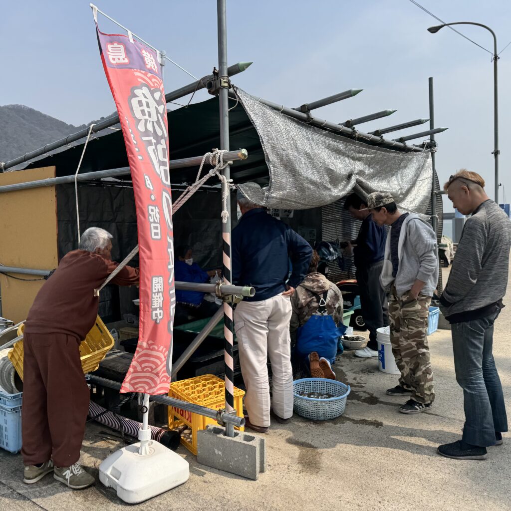 ひろしま食の手帖2027の取材に同行のため、横島で開催される「漁師の浜売り」に行ってきました。とれたてピチピチの魚を目指して多くのお客様が来ていました。フードプランナーとしてレポートします!