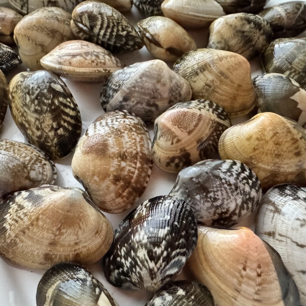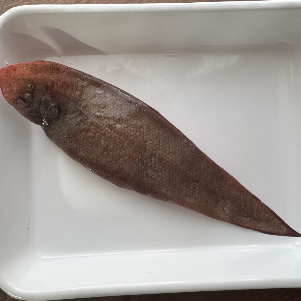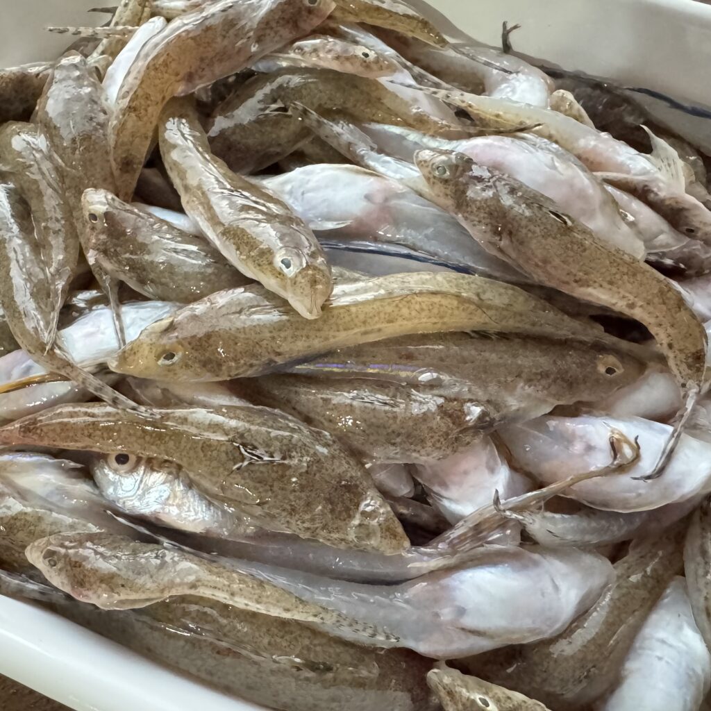 土地が違えば、魚も違う!知らない魚がいっぱい!隣に並んでいた奥様に聞いてみる(笑)整理券8番だったので残っているものからのチョイスですが…「ヌメリゴチ」とは???小さな魚でしたが、頭とはらわたをとって唐揚げにすると美味しいとのこと。それは試してみたい!ということで、このヌメリゴチと、あとは、舌平目、小エビ、アサリをゲットしました。小エビも水と一緒に冷凍しておくと長持ちするとのこと。奥様方、よくご存知で尊敬します。こういう出会いも浜売りやマルシェならではですね。すぐに売れきれでなかなかお目にかかれない小型イカ「チイチイいか」にはいつかお会いしたい!