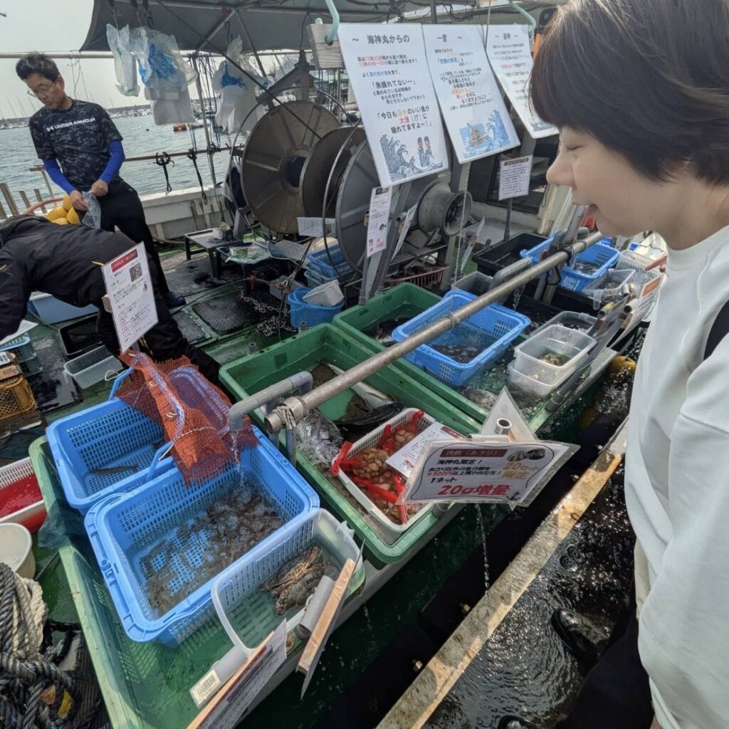 漁船の上で販売