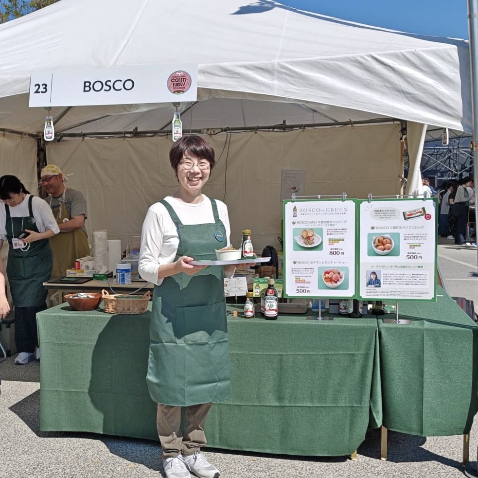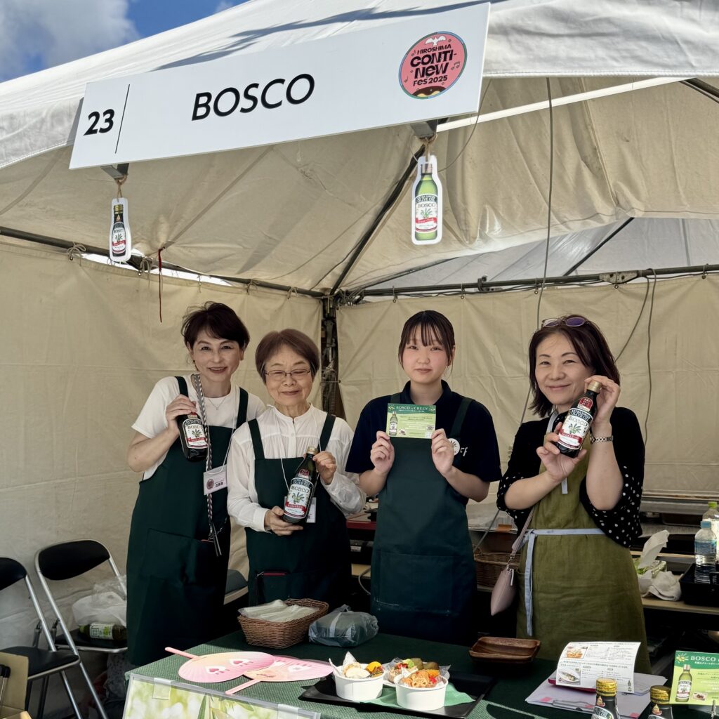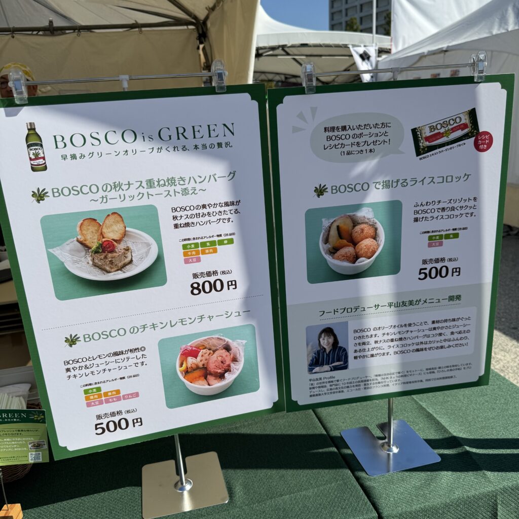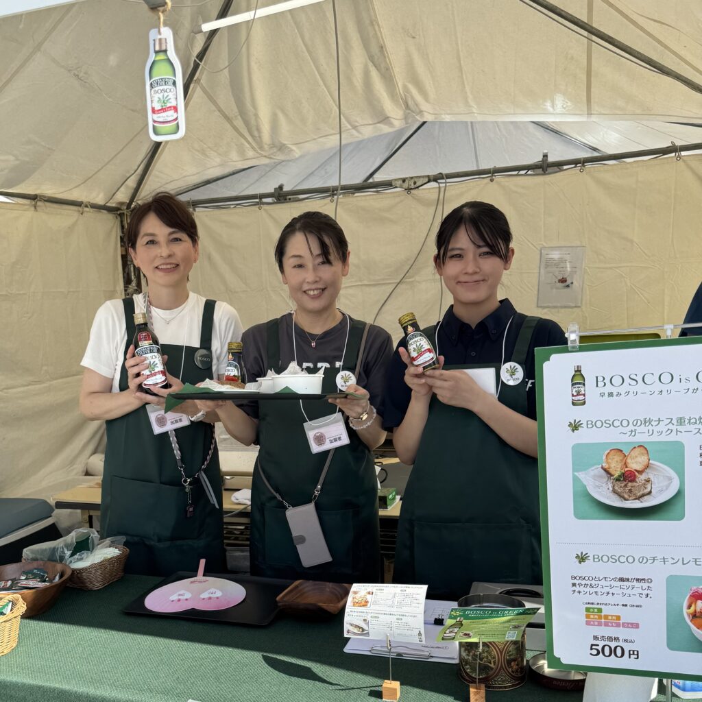 10/11〜13の3日間開催されました。この時期としてはかなり気温が高く、ほぼ猛暑(笑)直射日光を浴びながらBOSCOのオリーブオイルをふんだんに使った3品を提供しました。